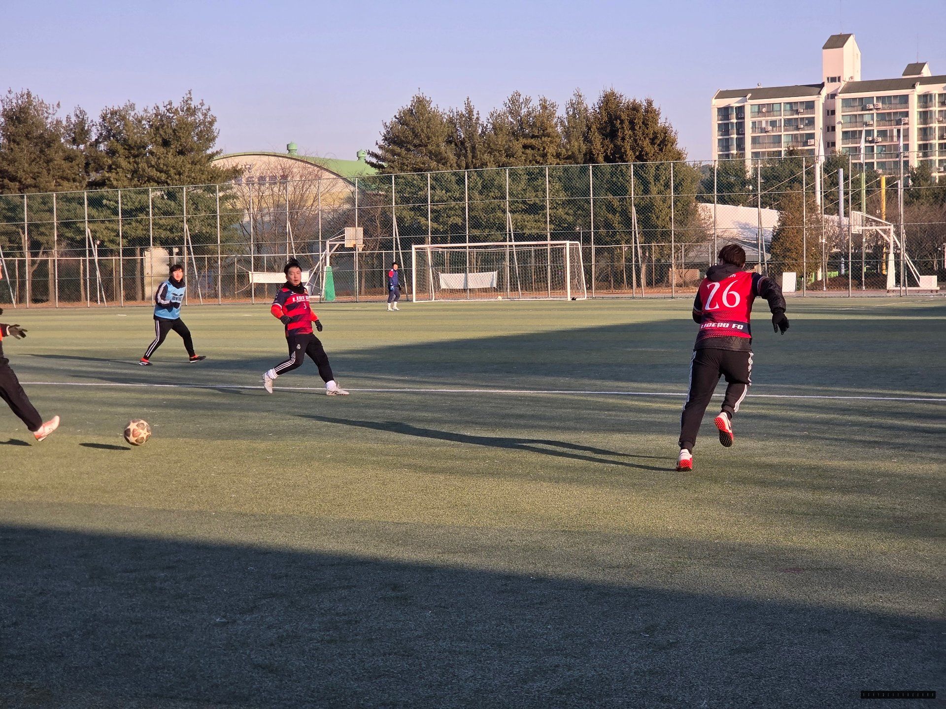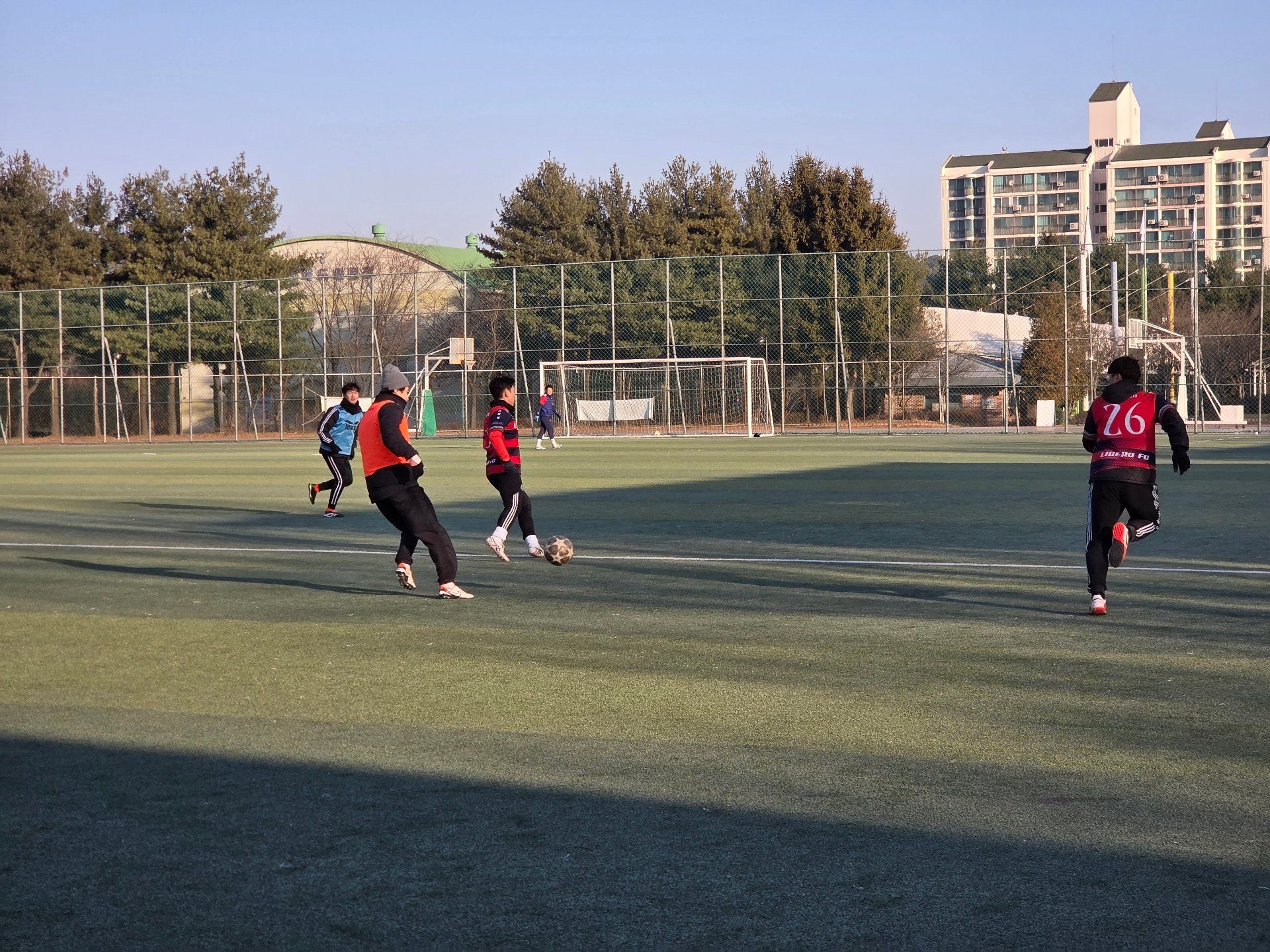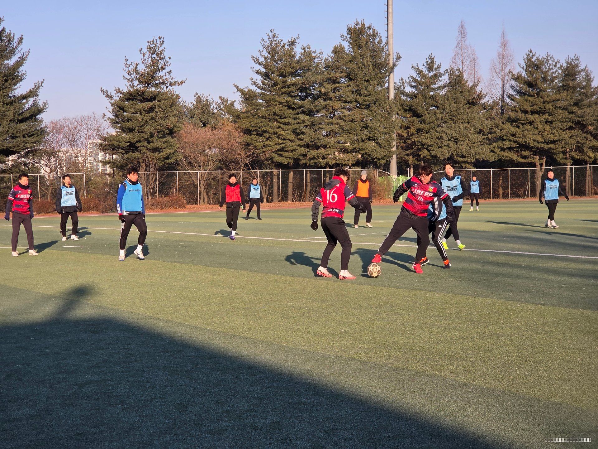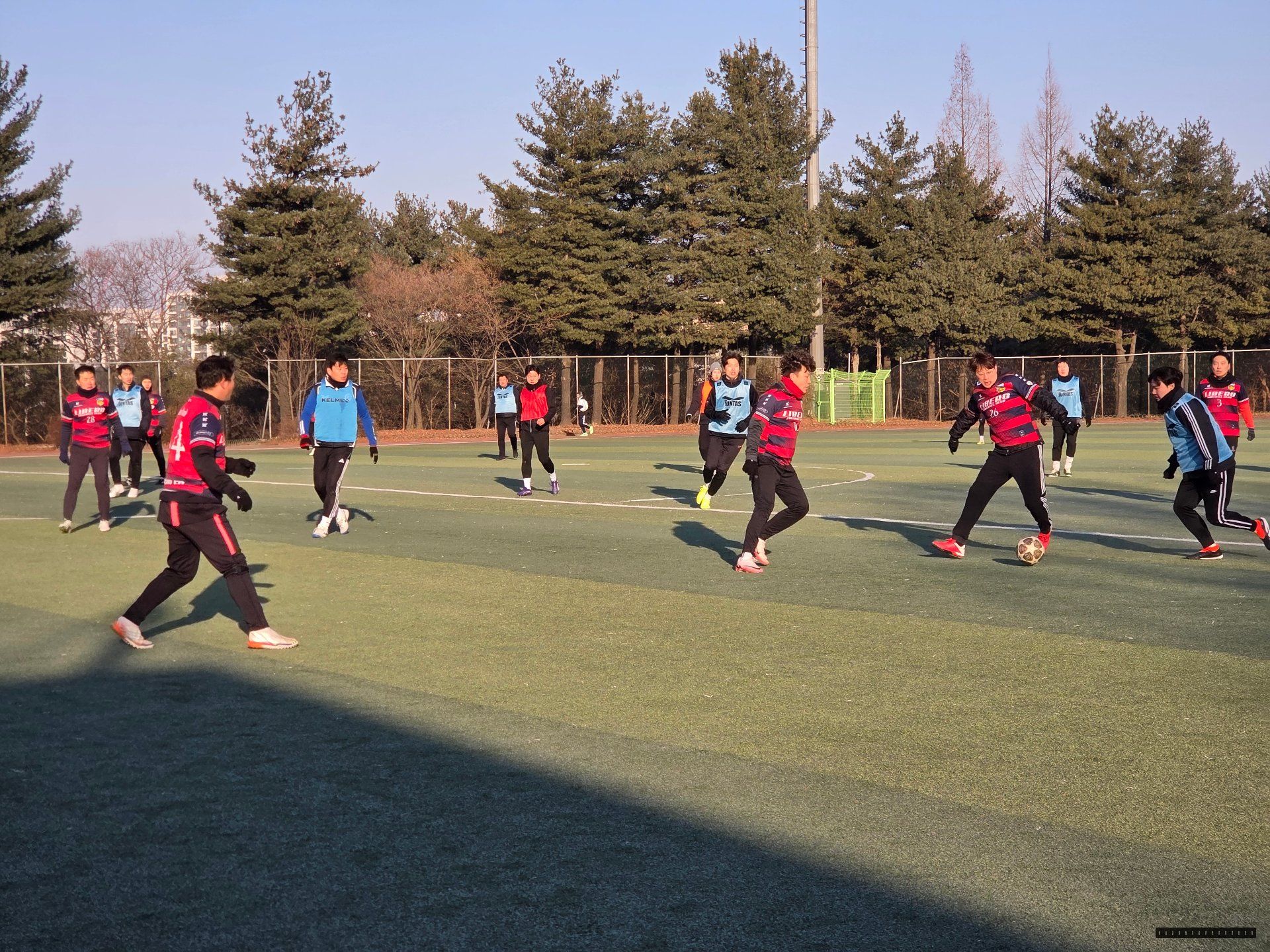 일산 리베로FC 조기회, 2월 첫 정모였습니다. 날씨 차갑긴 했지만 운동하기는 딱 좋았습니다. 몸 풀자마자 분위기 바로 올라갔습니다.